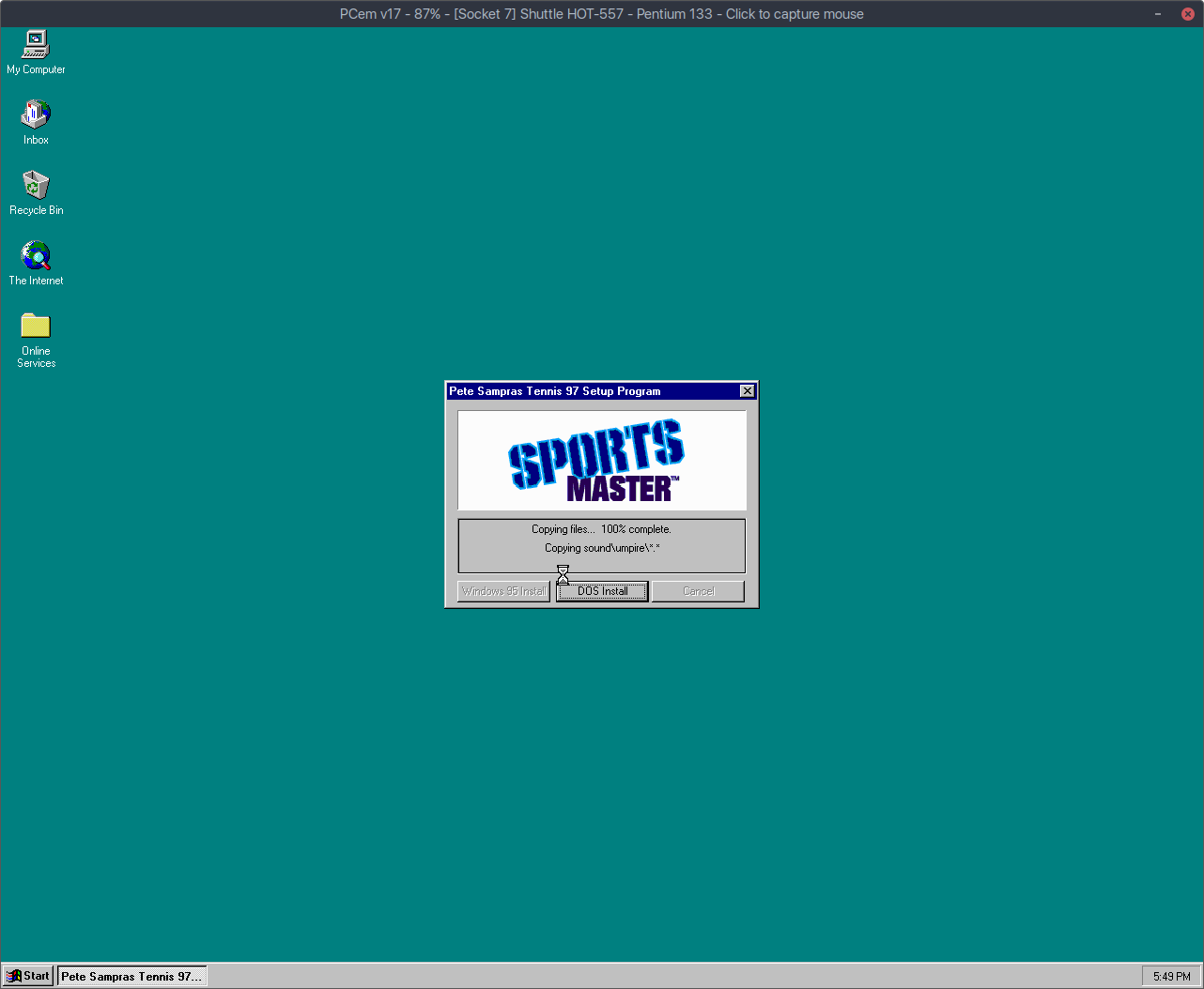 Sistem operasi yang saya pilih adalah Windows 95 OSR 2.5 dari tautan ini Windows 95 CDs . Saya gunakan 31795-OEM-0006627-29381 untuk kode product key. Setelah beberapa kali restart akhirnya Windows 95 berhasil diinstall.